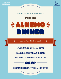 Hemophilia A and B, while enjoying a complimentary dinner in a welcoming, supportive setting.